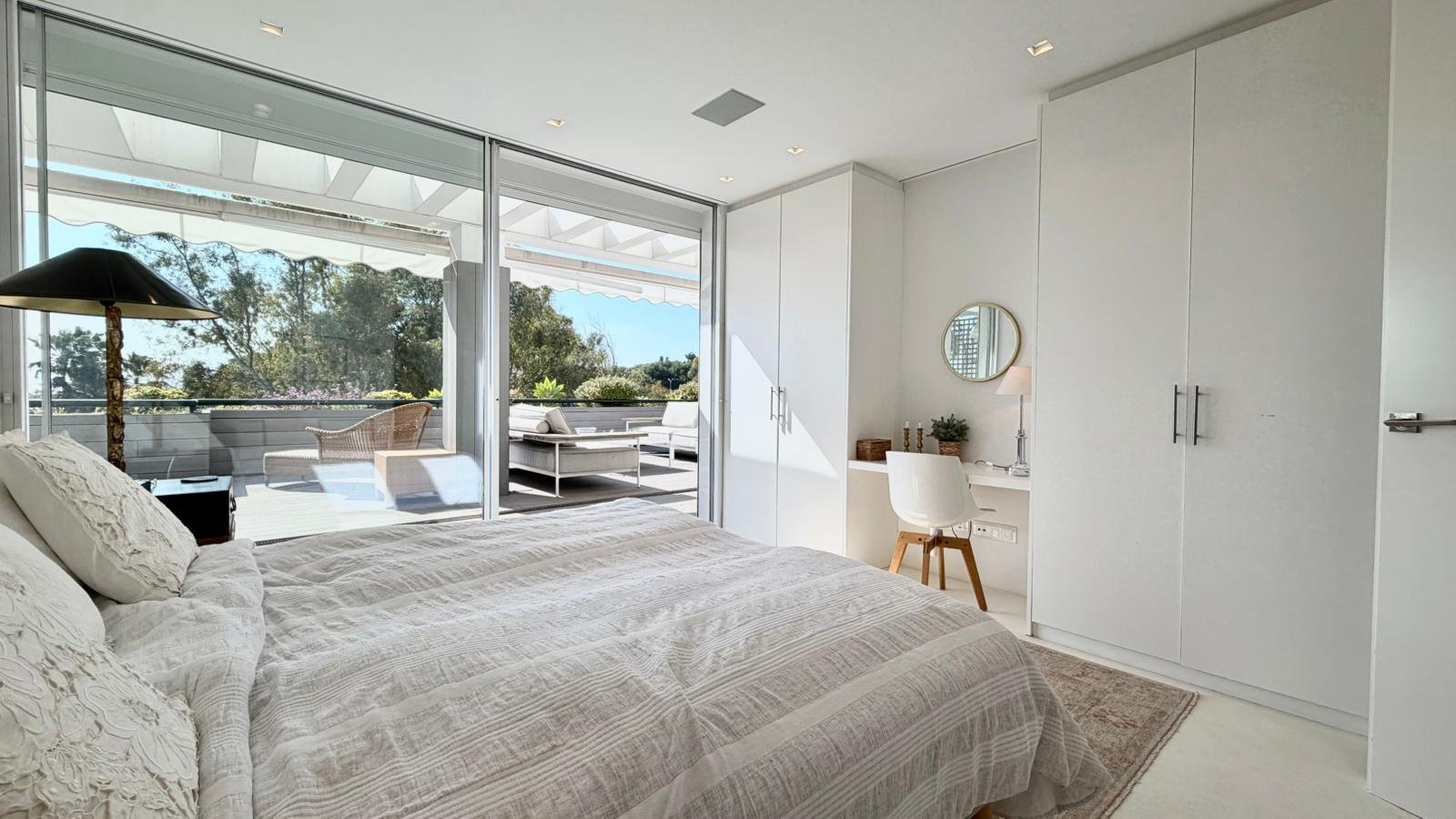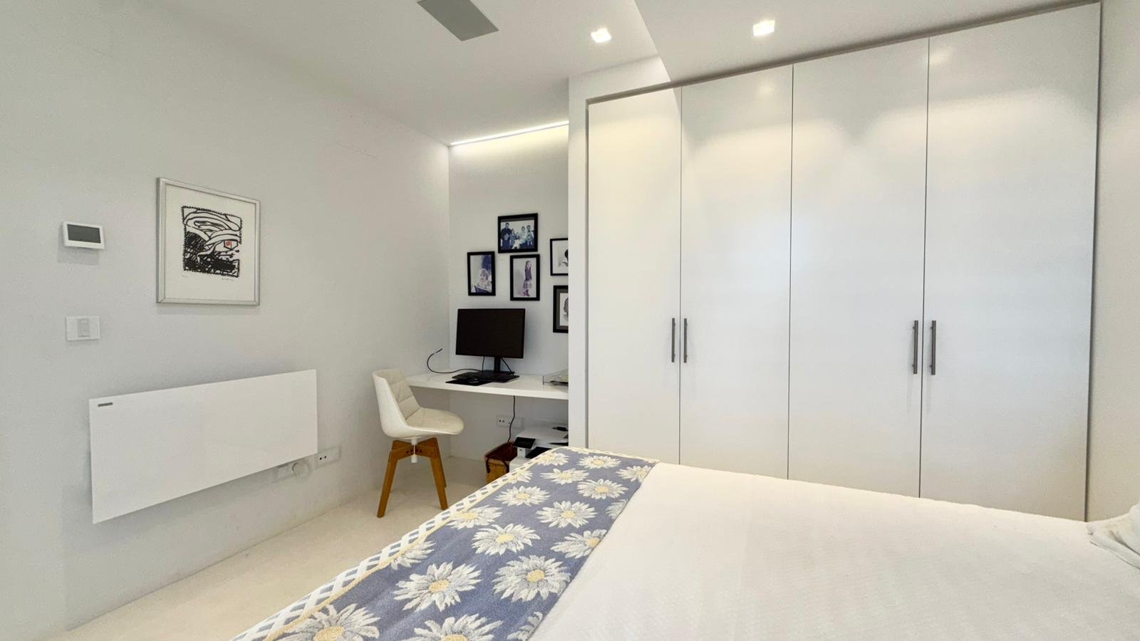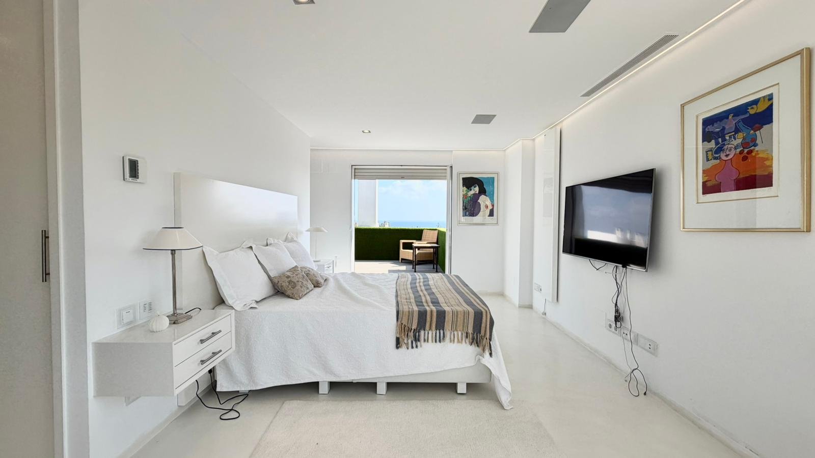 On the upper floor, the master suite offers a true private retreat. It features two large terraces with spectacular sea views, allowing you to wake up to the Mediterranean horizon and enjoy complete privacy.