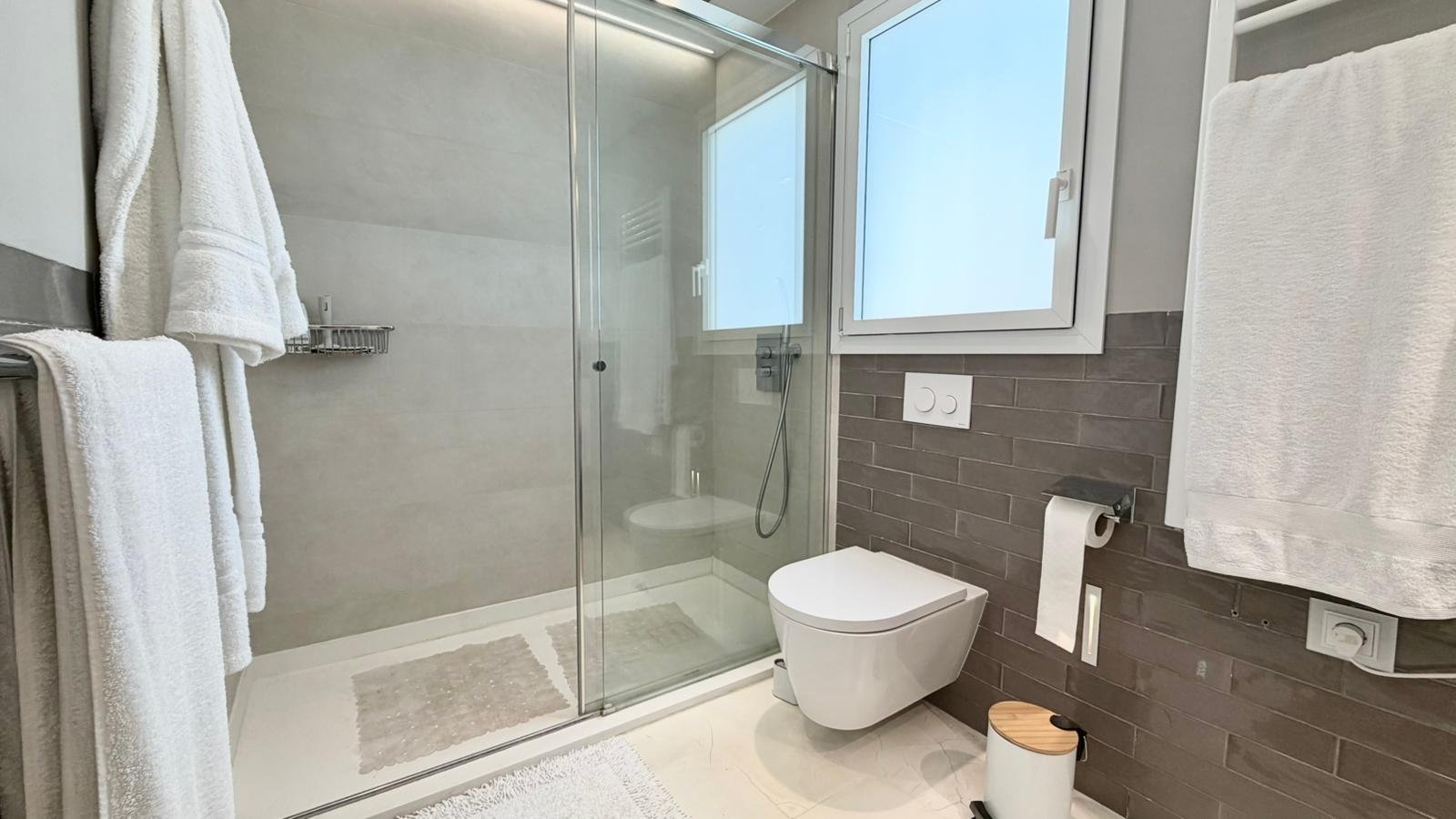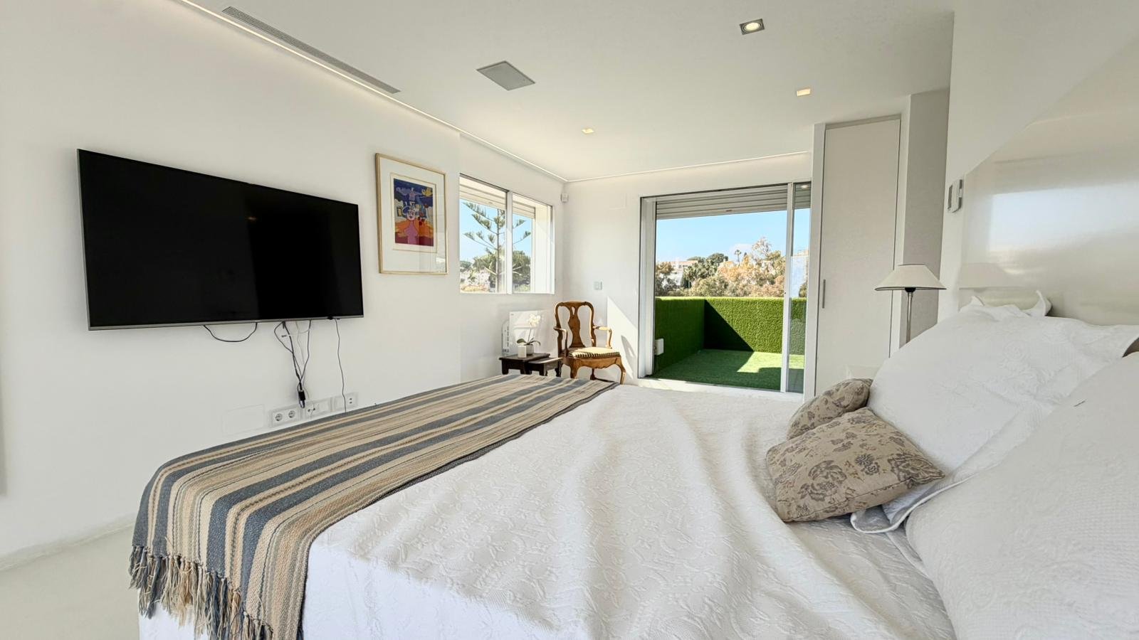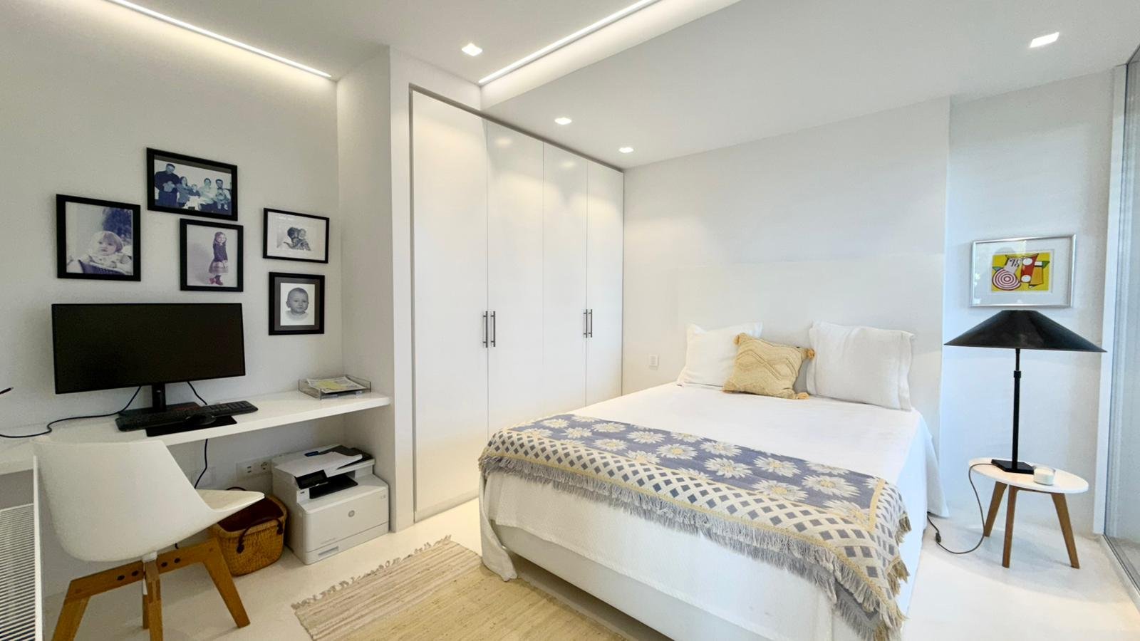 On the upper floor, the master suite offers a true private retreat. It features two large terraces with spectacular sea views, allowing you to wake up to the Mediterranean horizon and enjoy complete privacy.