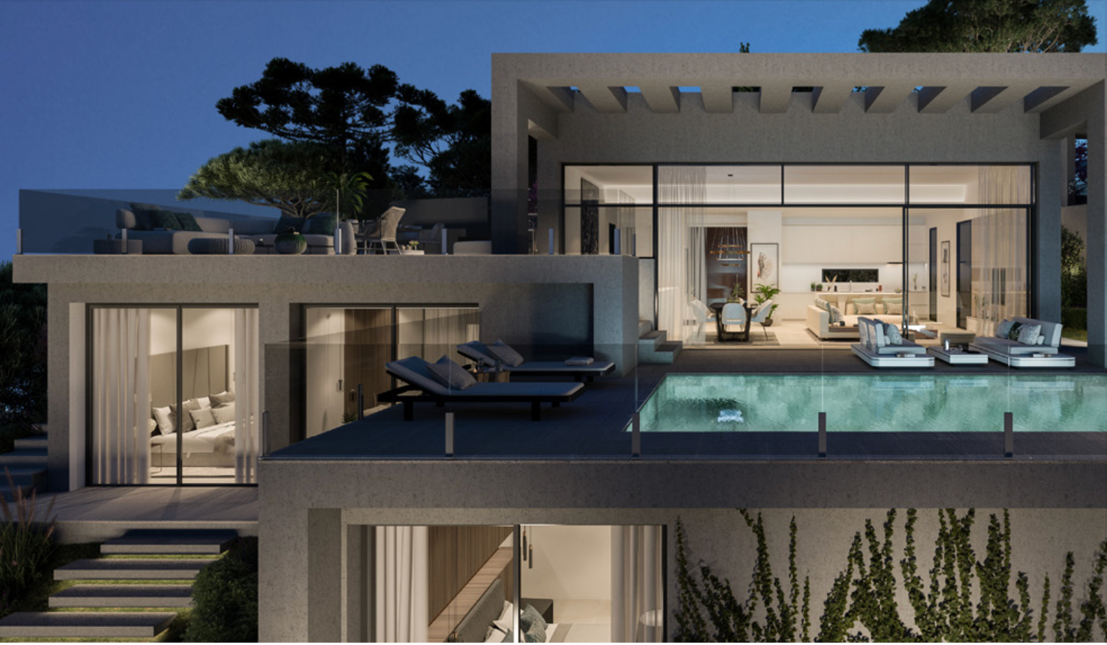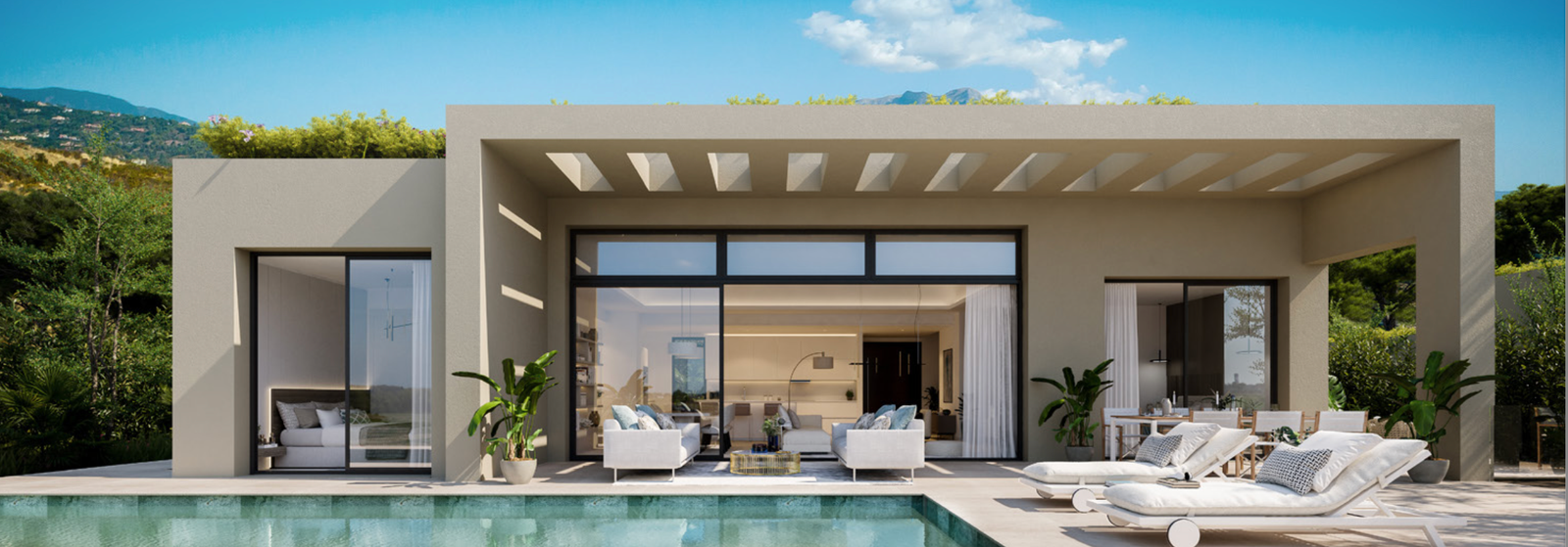 This brand-new development, La Finca de Jasmine, consists of modern and contemporary properties with organic and natural elements in keeping with the surroundings. Each villa comes with a verdant Mediterranean garden and a private pool. The development is located in the heart of Benahavís, only a few minutes away from Marbella and Estepona. It is one of the most exciting luxury residential projects in many years.