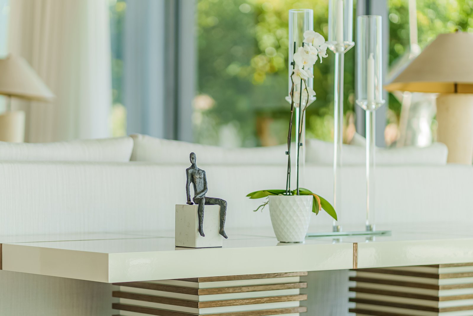 At the core of the villa is a spectacular living space defined by soaring ceilings and sliding glass walls that vanish into the structure, erasing the boundary between indoors and out. Sunlight pours throughout, elevating the exquisite finishes and drawing the eye toward the wide terraces, serene garden, and infinity pool beyond. The open plan creates a seamless flow for intimate gatherings as well as large-scale entertaining.